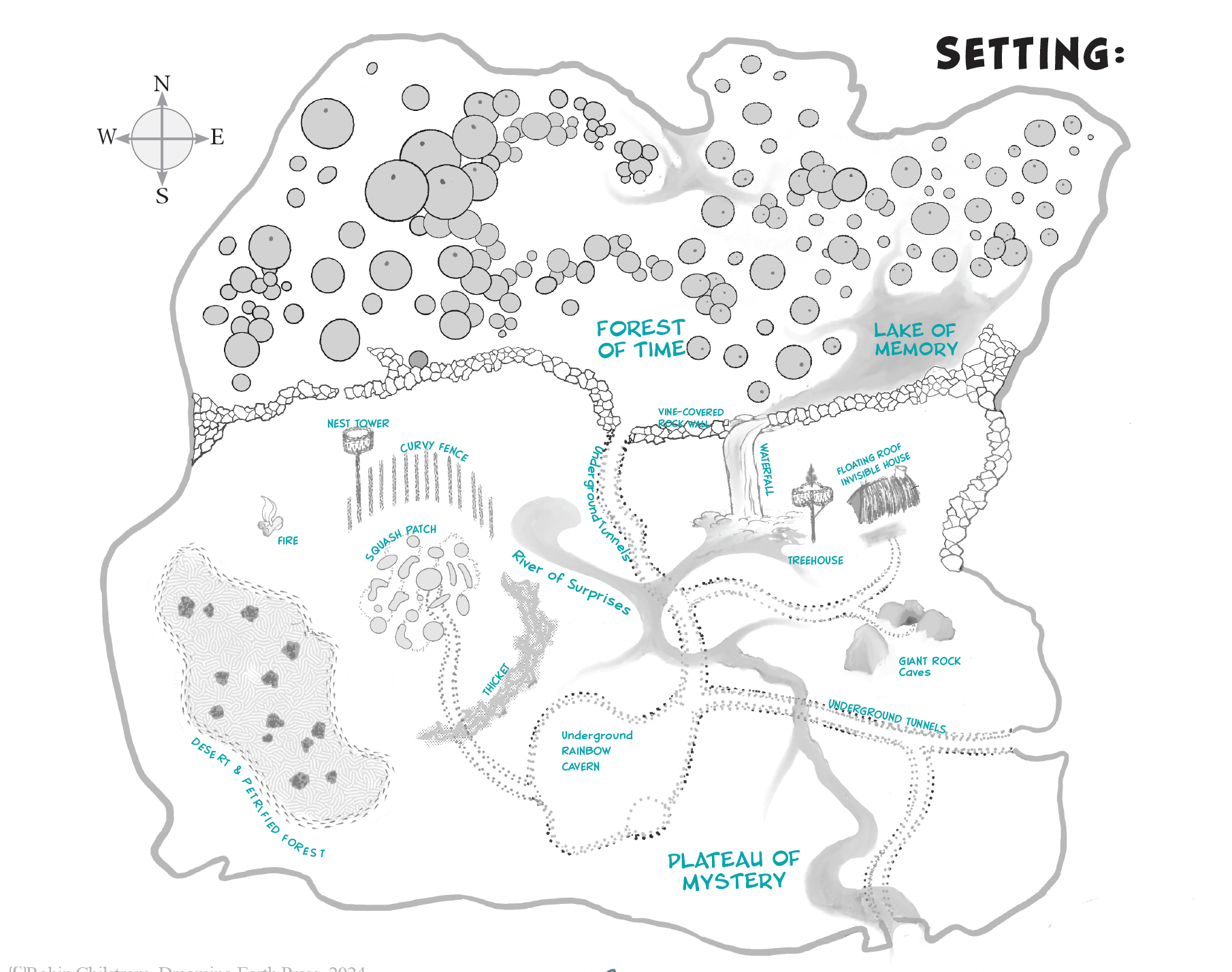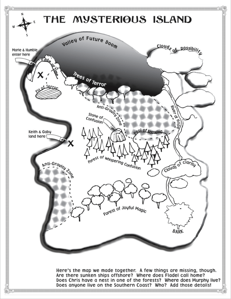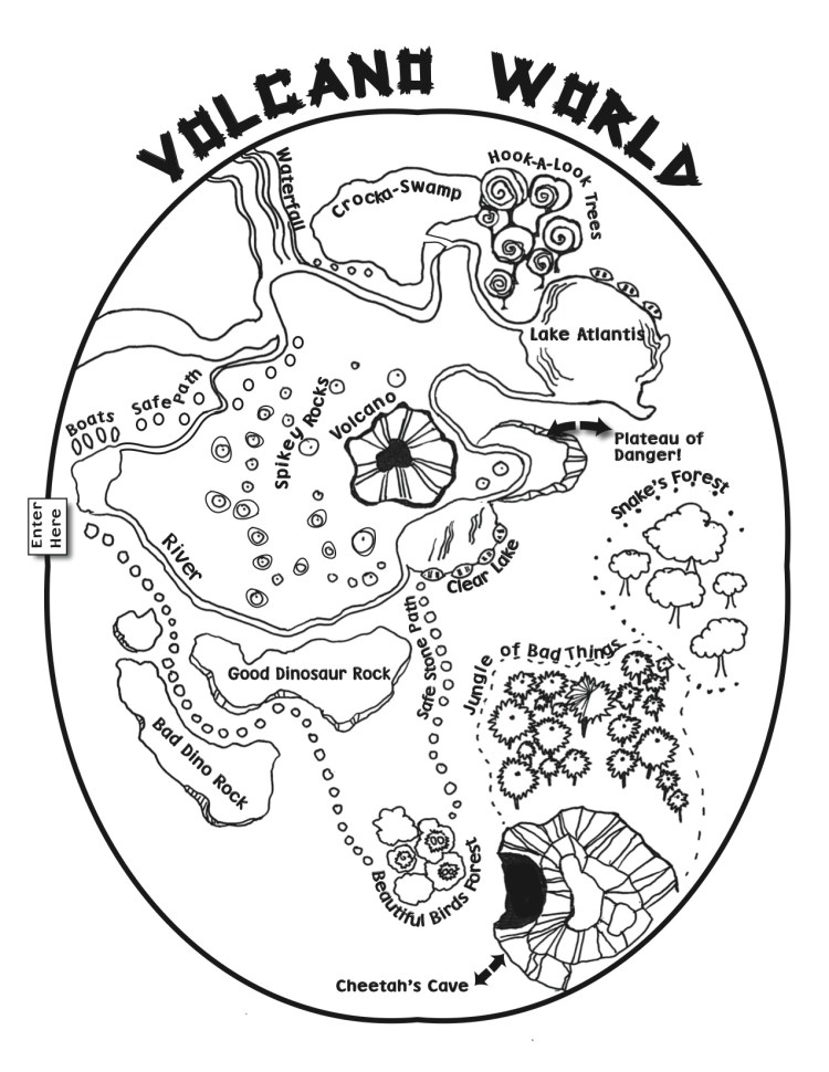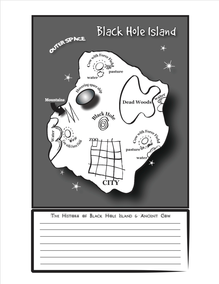 Here’s a downloadable PDF that you can use to invent your story setting. Click the Download button below, then fill out the text fields digitally, or print the file, fill in the questions, and draw a rough sketch of your map on the last page. You can use any kind of paper you have around the house to figure out and finalize your map. Have Fun!